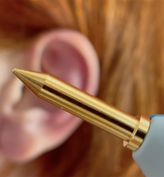 We recommend professional laser pens for ear acupuncture, such as the Premio 23 Evo (Sedatelec) or the LA-X laser pen (MKW laser system). A laser pen can be used to treat acupuncture points, ear points, trigger points and pain points. They are an indispensable tool in ear acupuncture, where Nogier frequencies are also used.